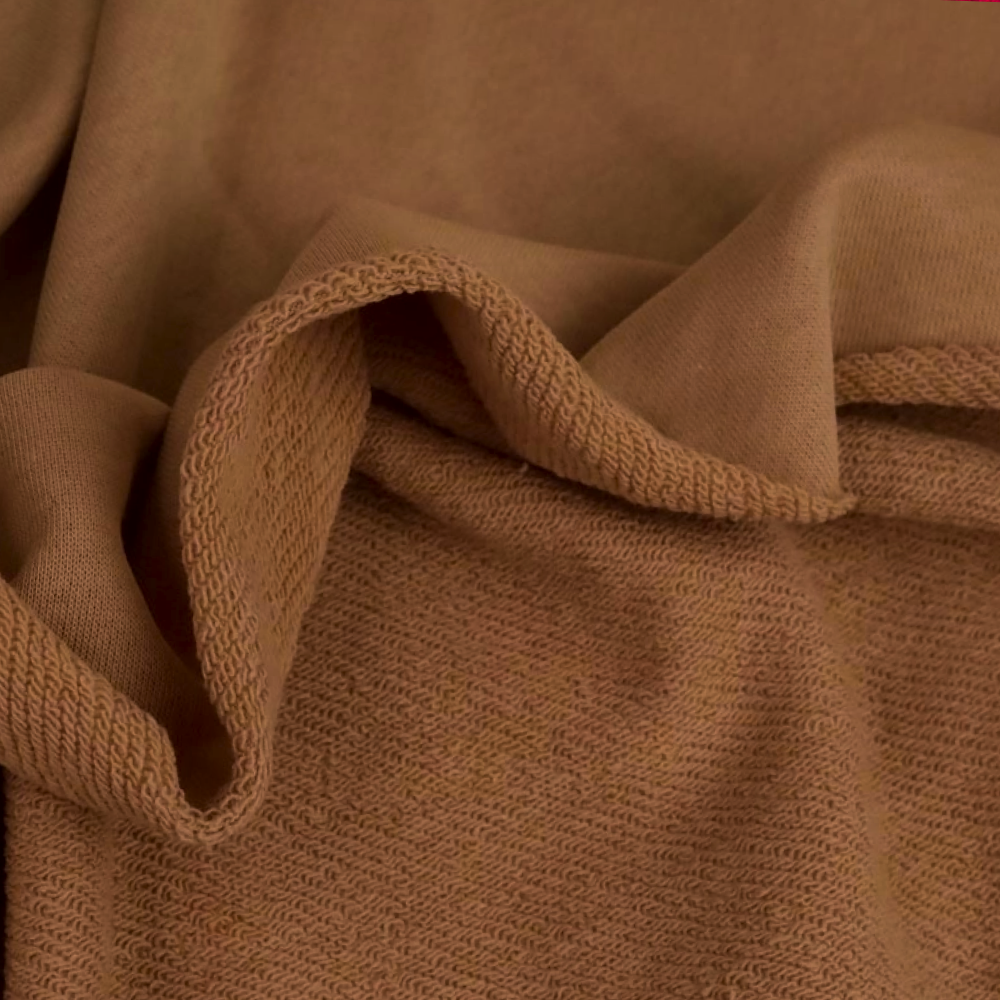 Трикотаж 3-нитка петля — це щільний трикотаж із гладкою лицьовою стороною та петельним виворотом. Добре тримає форму, зносостійка, приємна до тіла та повітропроникна. Ідеально підходить для худі, світшотів, спортивних костюмів і повсякденного одягу.